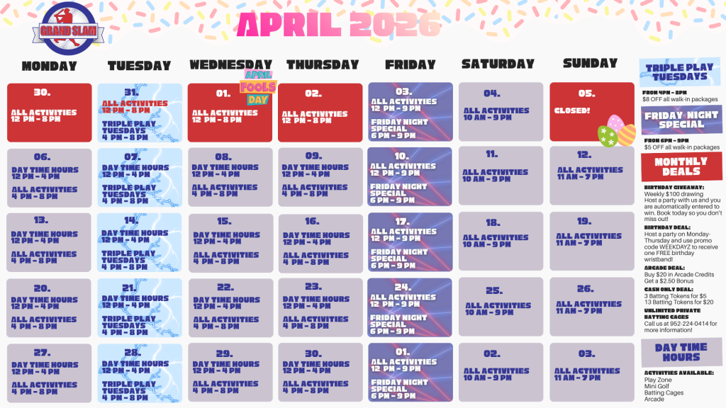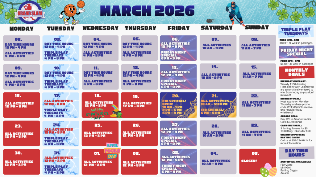 Krazy Kars, X-treme Trampoline, and Laser Tag open at 4 p.m. Monday through Thursday